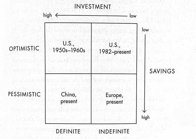 Peter Thiel’s Zero to One1 has become an unexpected philosophical eye-opener for me. There’s that section on different future outlooks, drawing the line between definite vs indefinite expectations, as well as optimistic vs pessimistic attitudes.