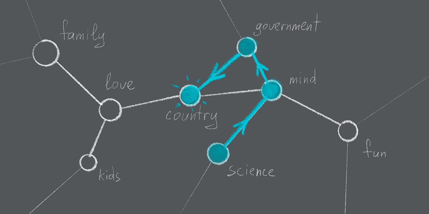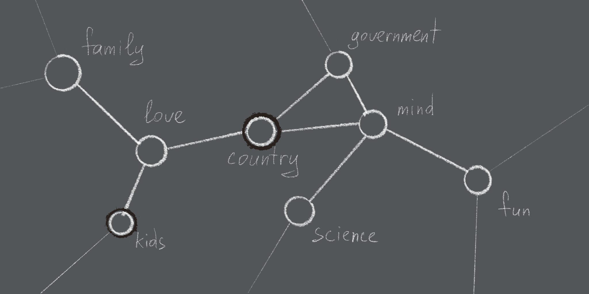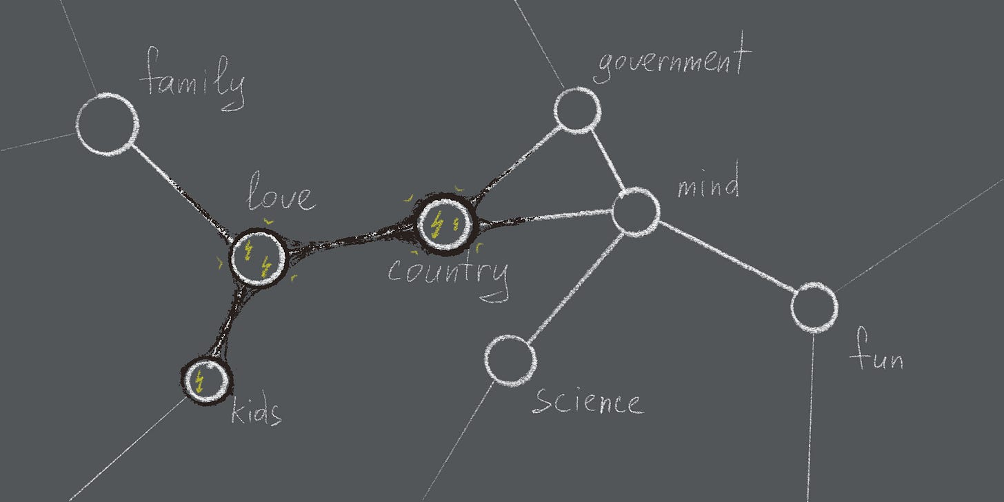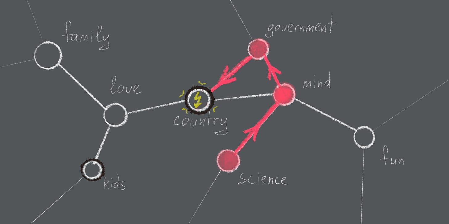 When I have a thought, a flash traverses a short path in that graph, amalgamating the contents of the nodes it touches. Sometimes, the thought results in a conclusion. That is usually a conclusion targeting a certain concept.